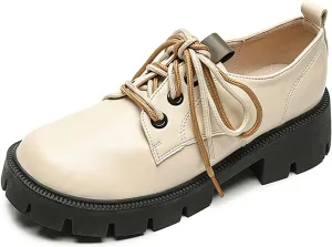 Women's Leather Platform Chunky Heel Oxford Shoes Fashion Colorblock Lace-Up Round Toe Lug Sole Loafers Comfort Vintage Casual Shoes for Business Work Office